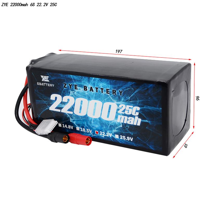 | 22000Mah | 6s 25.2V | 22.2V | 488Wh | 200*91*63 | 2,54 kg | 264a (12c) | 550a (25c) |