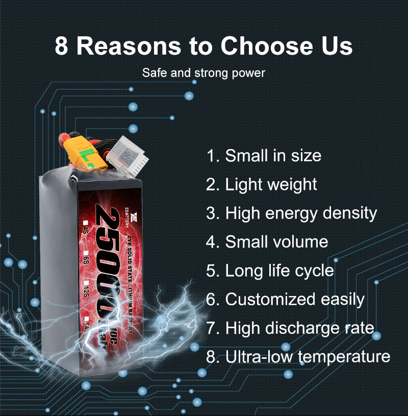 Zye's ei ehita me ainult akusid; Me ehitame usaldust. Kuna liitiumpatarei tööstuses on üle kümne aasta kogemusi, oleme oma teadmisi lihvinud toodete tarnimiseks, mis ületavad ootusi. Üks selline toode on meieKõrge energiatihedus 22AH 20AH 22000MAH 10C 20C tahke oleku li-ioon aku pikamaa droonide jaoks, mõeldud maksimaalse tõhususe ja vastupidavuse tagamiseks nõudlikes rakendustes.